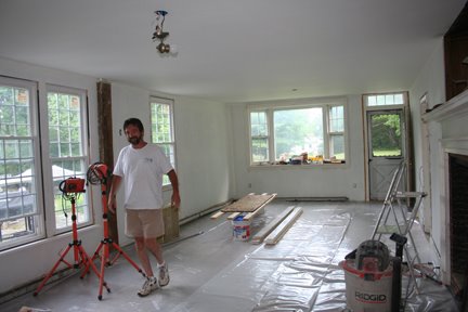 Paul priming the ceiling June 28th. The next day they