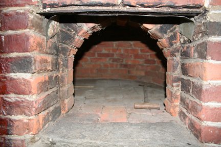 I pulled out a piece of tin in the front of the arched door and found the flu.
