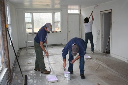 put the last coat of paint on the ceiling.