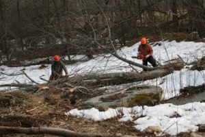 haul some trees up the bank.