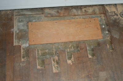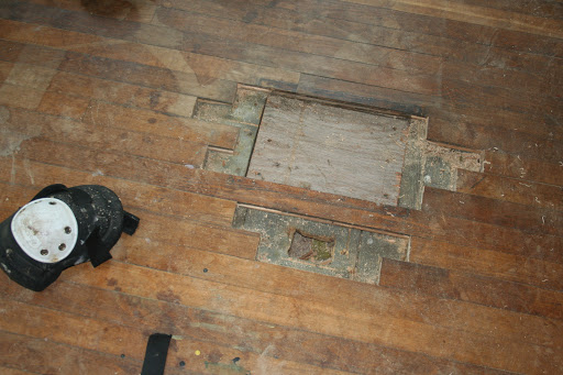 While Mike patched Max sanded a previous patch to see if the wood matched