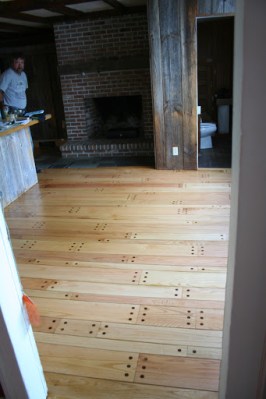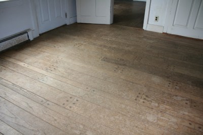 Beautiful oak with walnut plugs. My Dad put this floor in when
